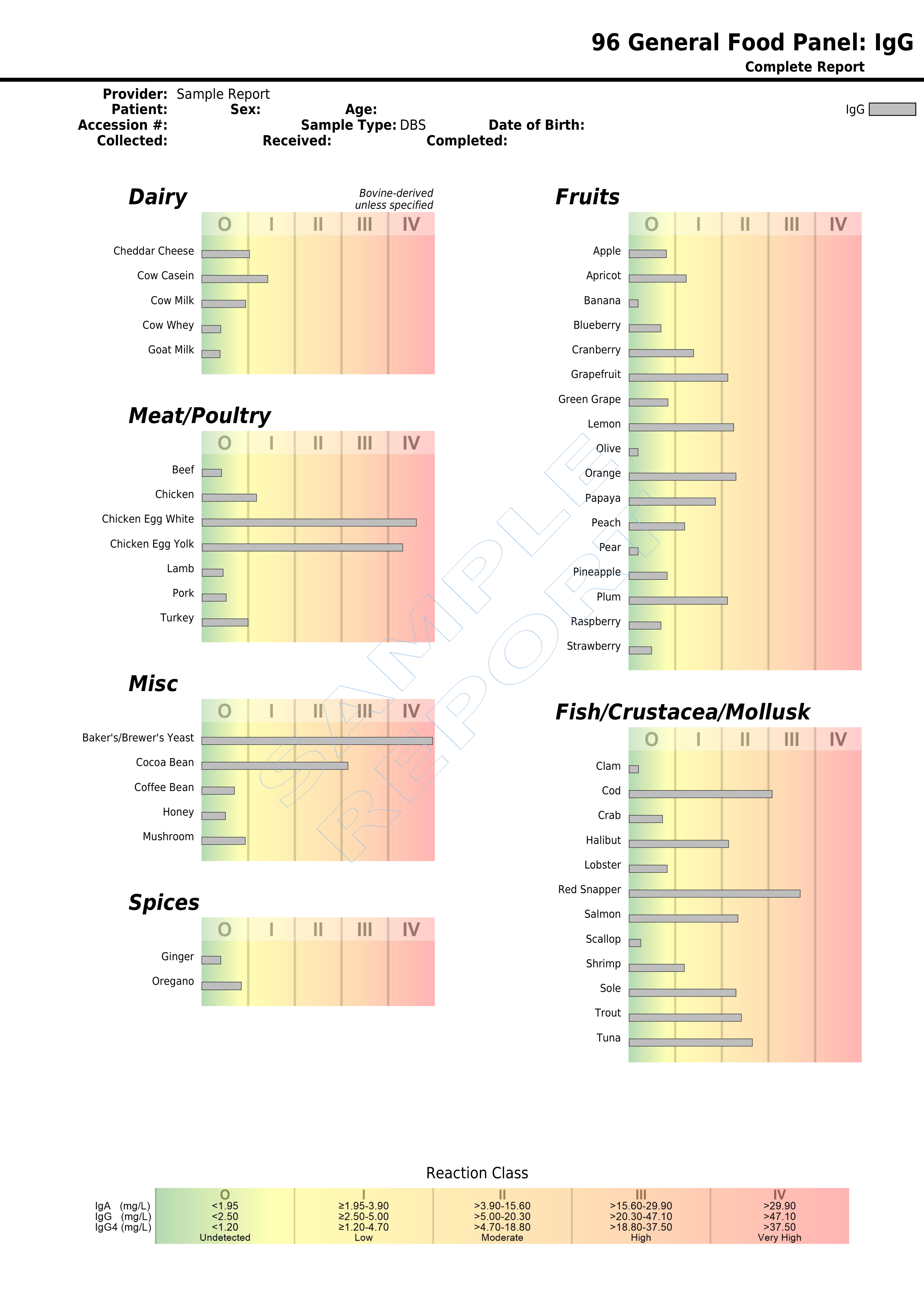 The 96 Food Panel by FoodAlign is a CLIA-certified laboratory test that measures immune reactivity (IgG, IgG4, and IgA antibodies) to 96 commonly consumed foods and spices. This test helps uncover delayed food sensitivities—often linked to symptoms like bloating, fatigue, skin issues, mood swings, and digestive discomfort.